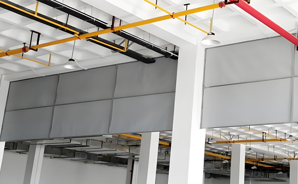 框架结构:为了固定防火布,挡烟垂壁通常会配备金属框架或悬挂系统,确保其在安装位置上稳固不动。有些设计还会包含自动下落装置,在检测到火灾信号时能自动展开。